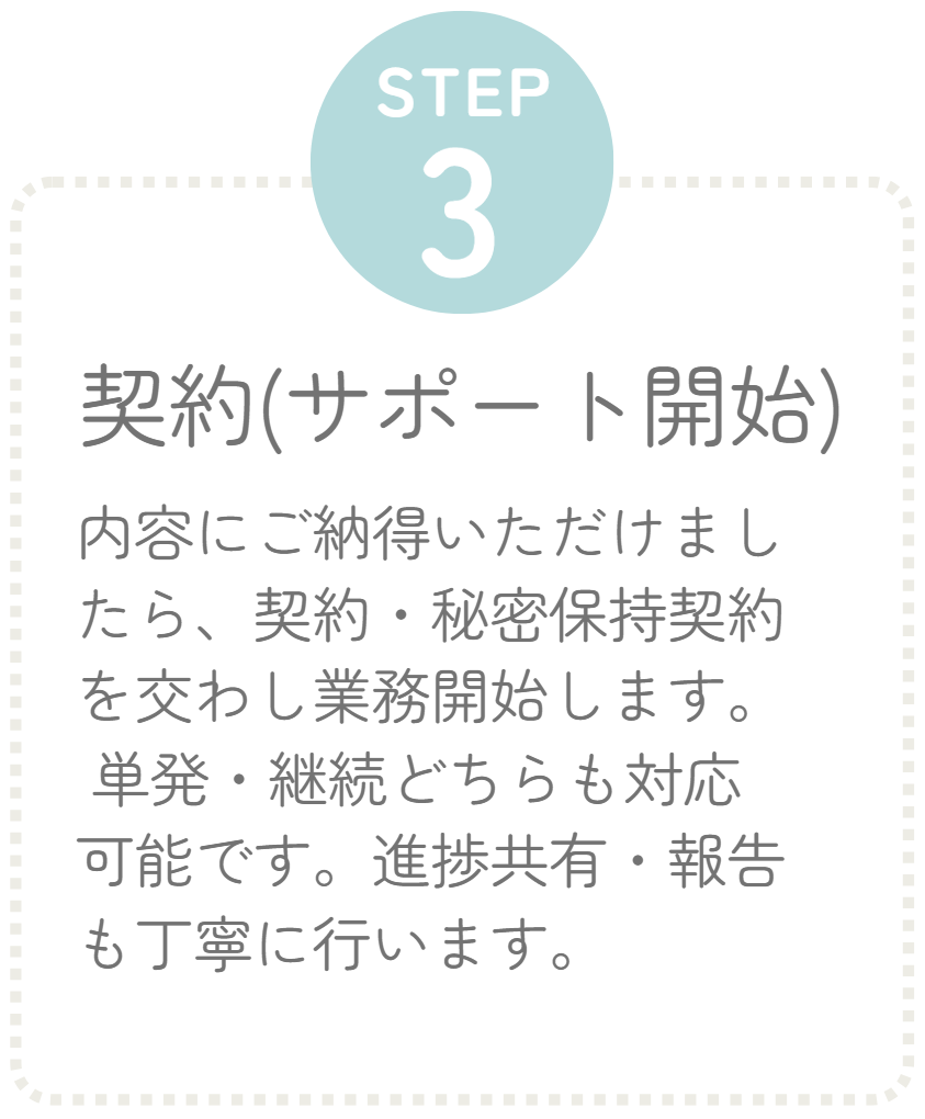 - 長期の業務委託をご希望の場合、初回1か月のトライアル期間を設けています。